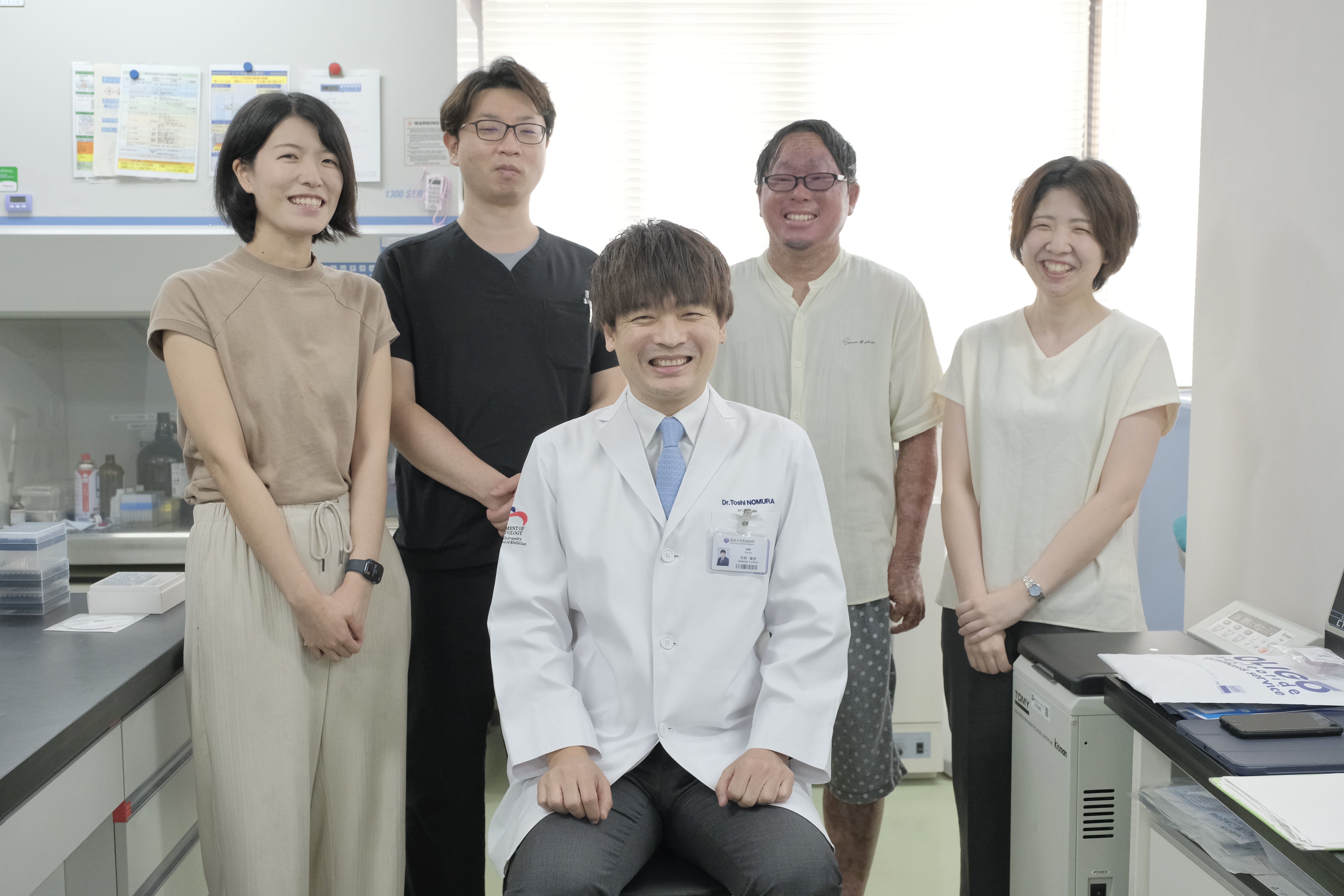 乃村チームでは、魚鱗癬や掌蹠角化症を切り口に、遺伝性疾患全体の発展に繋がるような研究を志向しています。具体的には、変異mRNA/タンパク質分解機構やrevertant mosaicismの発生機構、リードスルー治療、RNA創薬などを研究しています。遺伝性疾患の診断や治療を前進させるような新しい科学的知見を得ることを目標に、チームのメンバー全員で力を合わせて頑張りたいと思います。当研究室が立ち上がってまだ2年と短いため、人数はまだ5名と少ないですが、臨床教室としては珍しく基礎研究者2名が在籍しており、強力に研究を推進していきます。そして、患者会(魚鱗癬の会ひまわり)との連携もさらに密にし、患者さんに直接的に役立つような活動を今後も継続していきたいと思っています。
